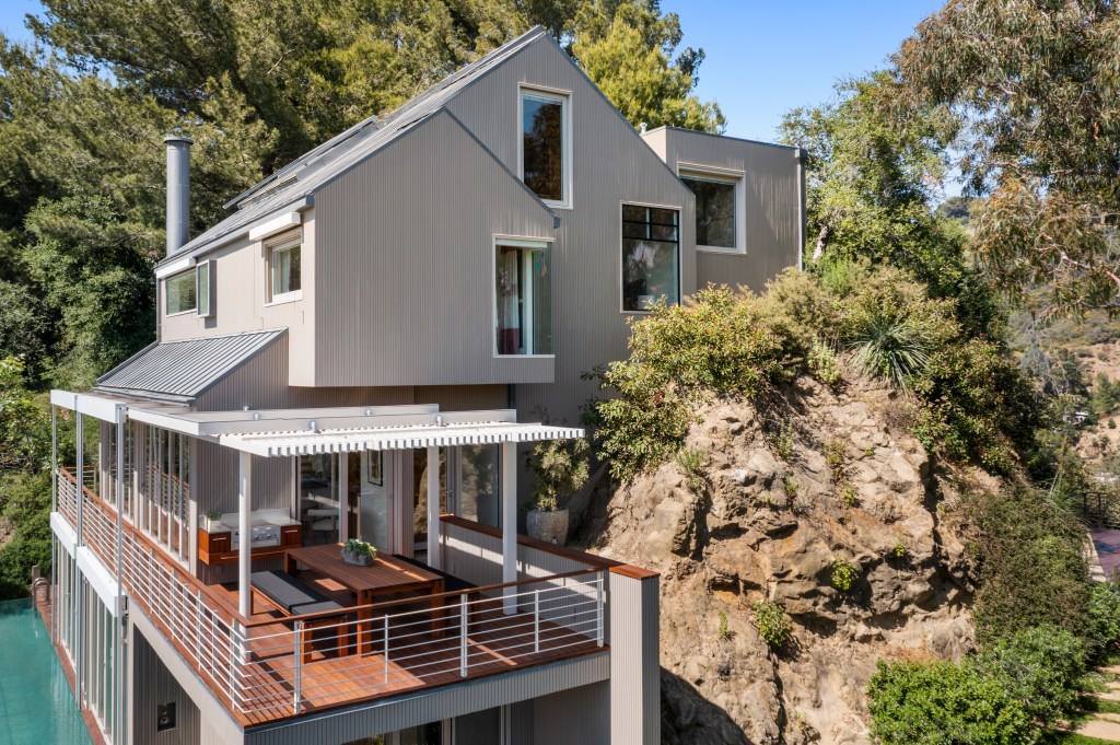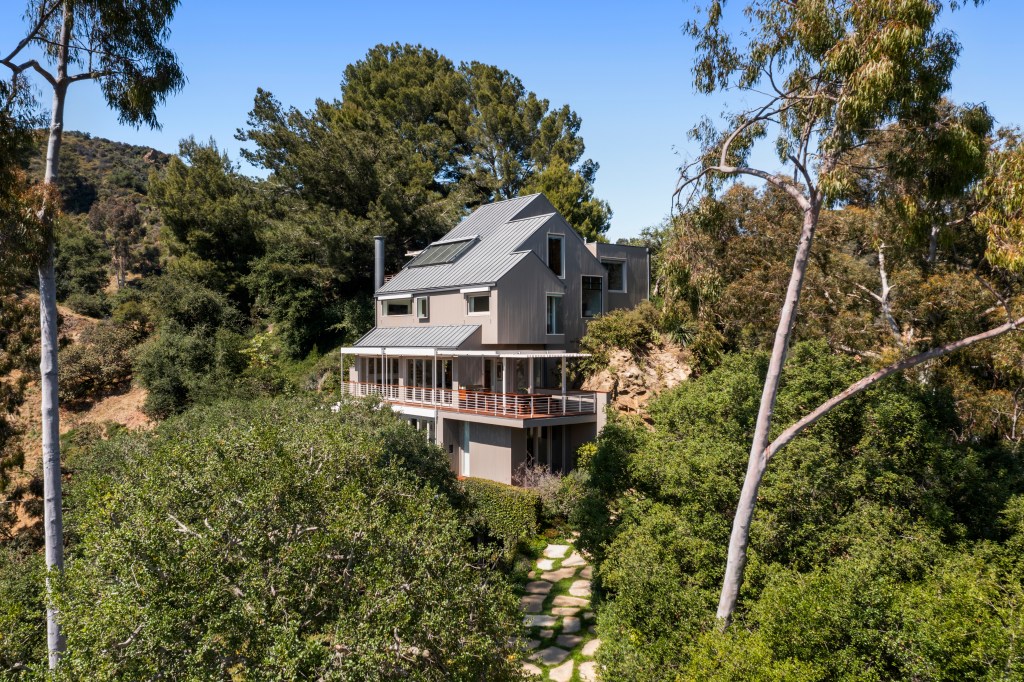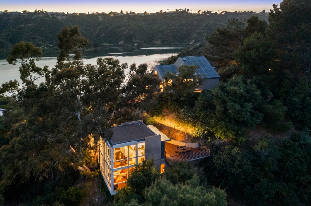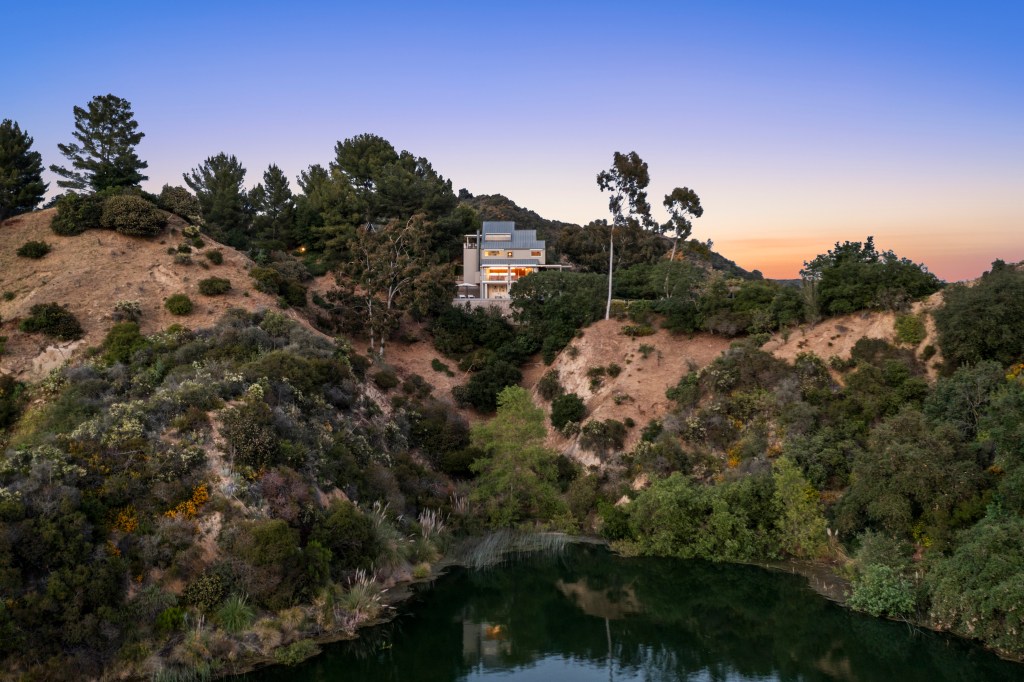 Owned by filmmaker Breck Eisner, the Bel Air property overlooks Stone Canyon Reservoir and features a tiered, 68-foot-tall main house and detached two-story workspace.